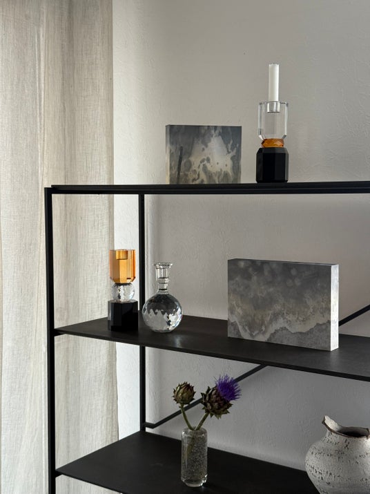 造形的なフォルム、交差する光と色。まるで小さな彫刻のような佇まいのクリスタル製のキャンドルスタンドです。キャンドルスタンドは高さが出せるので、インテリアコーディネートにおいて欠かせない存在ですが、このプロダクトはキャンドルを立てずに置いておくだけでも、アートピースのように存在感があります。3rd partyではモダンな空間に馴染むシックで洗練された色調のデザインをセレクトしました。14,080円~