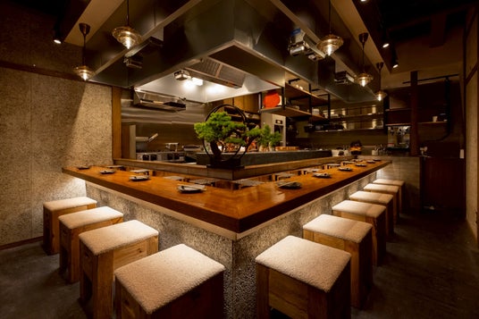 『炉端×寿司 Hana 福島』の看板は、 豪快に焼き上げる「原始焼き」と 美容と健康を意識した「黒シャリ寿司」。