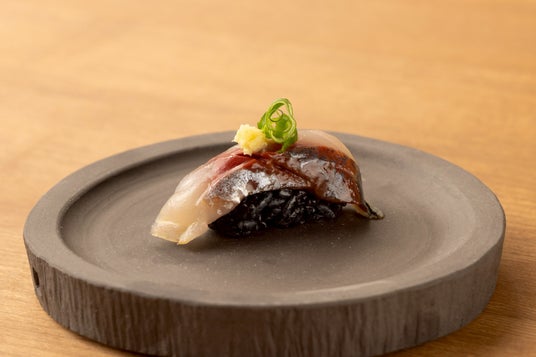 お寿司は、門外不出の特製黒酢と竹炭を合わせた特製の"黒シャリ"を使用。