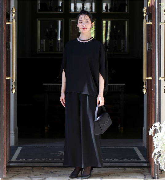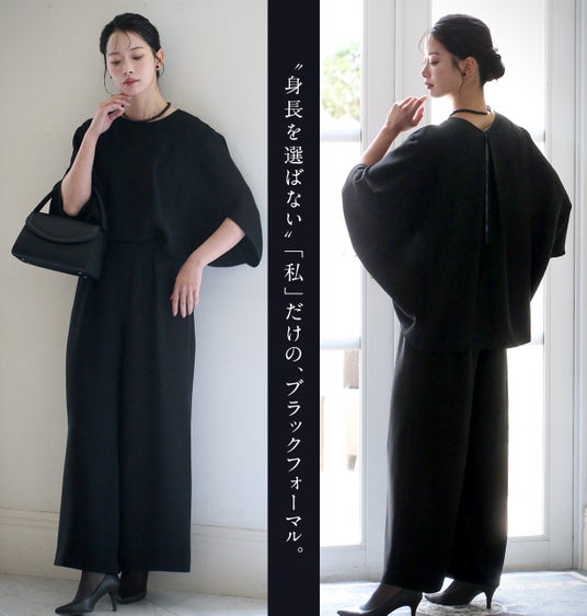 身体のラインを拾わない独自のパターン技術で誕生した「着痩せする、ブラックフォーマル」は、1人ひとり異なる体型のお悩みに合わせて、ワンピースまたはパンツの2種類のスタイルからお選びいただけます。