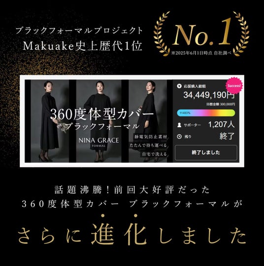 Makuake史上No.1※を獲得した【360度体型カバー】洗えるブラックフォーマル待望の第2弾!先行販売開始