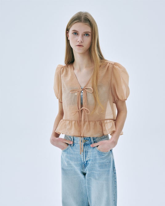 SHEER RIBBON BLOUSE HALF SLEEVE:¥¥17,600
