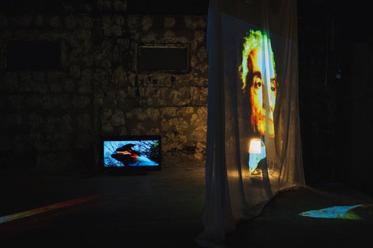 戦争をテーマにした章です。床に置かれたテレビの数々は「墓」をイメージしており、戦争に関する映像が流されます。建物の壁も作品の一部として考えています。