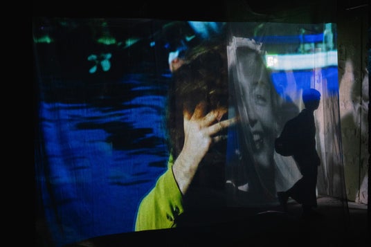 映画における「リメイク」という概念がテーマとなっている空間。何枚も重ねられた布の間を、来場者が回遊するように往来します。