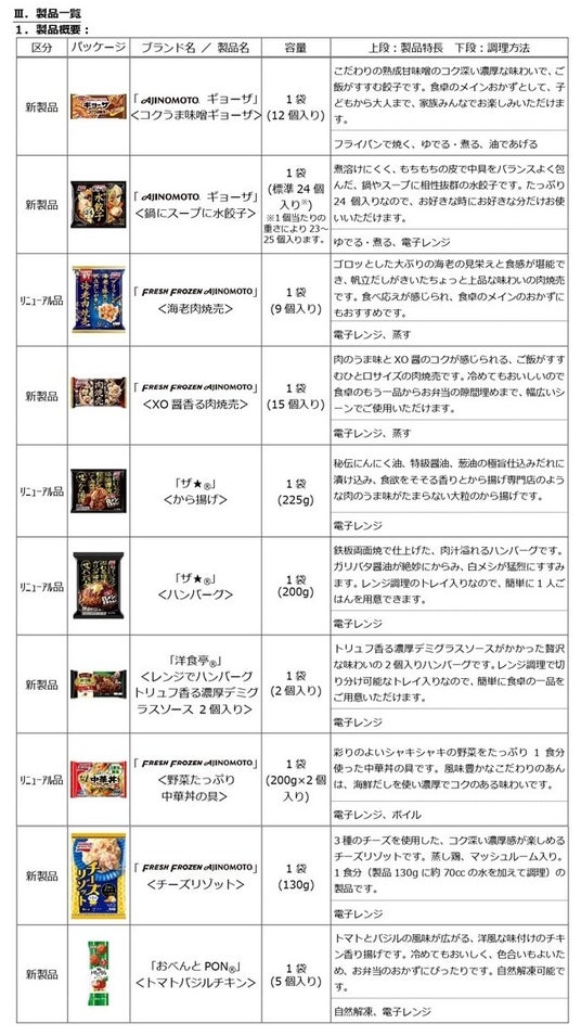 味の素冷凍食品(株)2025年秋季 家庭用 新製品・リニューアル品のご案内