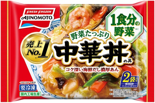 2024年度の冷凍丼の具市場規模は前年比約115%※1と好調で、冷凍中華丼の具市場も堅調に推移しました。冷凍中華丼の具市場では、当社の<野菜たっぷり中華丼の具>が売上No.1※2であり、「1食分の野菜が摂れる」ことが評価されています。生活者が野菜を十分に摂取できない理由として、「価格が高いから」、「摂取の目安量がわからないから」、「調理に手間をかけられないから」などが挙げられています※3が、<野菜たっぷり中華丼の具>は小松菜や白菜、たけのこなど1食分の野菜を使用※4しており、このような悩みを解決することができる製品です。また、常温帯で販売されている中華丼の具とほぼ同価格であるにも関わらず、野菜の品質をより高く保つことができます。今回、野菜をさらにおいしく食べることができる製法と味付けを採用し、コク深い海鮮だしの濃厚なあんにリニューアルしました。ご飯や麺と一緒に、一段とおいしく野菜を摂ることができます。