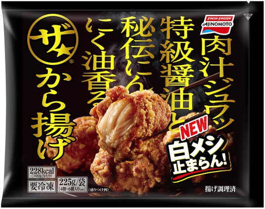 <から揚げ>は、食欲をそそる醤油の香りを立たせ、にんにくの配合を見直すことで、白メシがすすみ、何個も食べたくなるようなから揚げへと進化しました。<ハンバーグ>は、肉粒感のあるお肉を配合し、肉食感をアップ、さらに玉ねぎの食感を加えた「新・ガリバタ醤油」をからめ、ますます"白メシが止まらない"ハンバーグになりました。あわせて、「ザ★(R)」ブランドは、TVCMをはじめとするコミュニケーションも8月に刷新します。