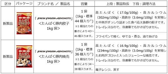 味の素グループでは「妥協なき栄養」をテーマに掲げ、独自の技術力を活用し、生活者の健康と栄養価値を提供するための製品開発を進めています。<たんぱく豚肉餃子1kg袋>と<たんぱく豚肉焼売1kg袋>は、高たんぱくのみならず、食べ応えやおいしさにも妥協することなく開発しました。