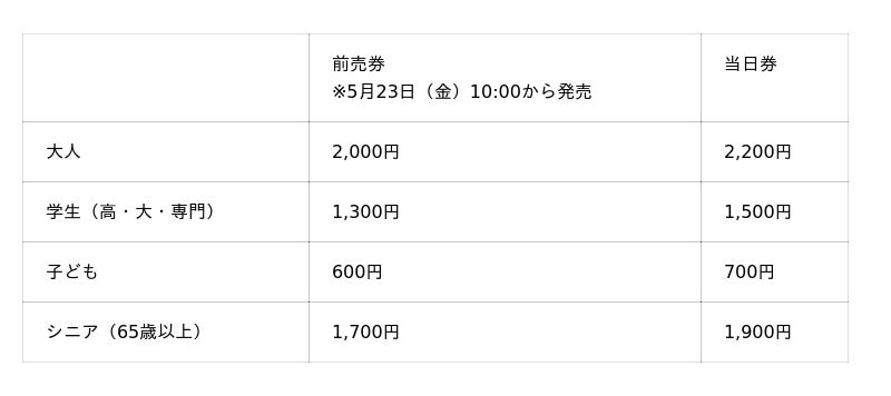 前売券 :5月23日(金) 10:00 ~ 7月18日(金)23:59まで