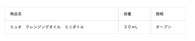 今回発売する「ミュオ クレンジングオイル ミニボトル」は「試してみたいけれど、いきなりフルサイズは不安」、「自分の肌に合うか試したい」、「旅行で荷物を減らしたい」そんな想いをお持ちの方にピッタリの商品です。