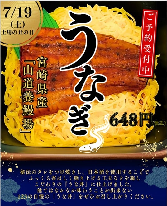 13年連続で宮崎県「山道養鰻場」のうなぎを使用 土用の丑の日(7月19日)に昼食として