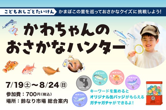 鈴廣では、かまぼこの歴史や栄養を楽しみながら学べるかまぼこ博物館や、地元農家と連携した体験型イベントなどを通じて食育活動に取り組んでいます。かまぼこの原料である「魚」をテーマに、自然環境と向き合うことや魚食推進を目的としたイベントを実施いたします。期間中はかまぼこの里を回遊しながら楽しむクイズラリー「おさかなハンター」や、かまぼこ板のぬりえワークショップ「おさかなアーティスト」などを実施いたします。8月17日(日)には、スペシャルゲストとして「さかなのおにいさん かわちゃん」にご登壇いただき、おさかなクイズショーとワークショップを開催します。