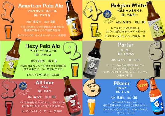 日本人の好みに合った6種類の美味しいクラフトビールをご用意