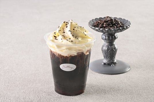 『Butteryコーヒージェリー』は、バタリーオリジナルブレンドのエスプレッソに、コーヒーゼリーを合わせました。ホワイトチョコのエスプーマに、砕いたコーヒー豆をあしらった、香り豊かなドリンクです。
