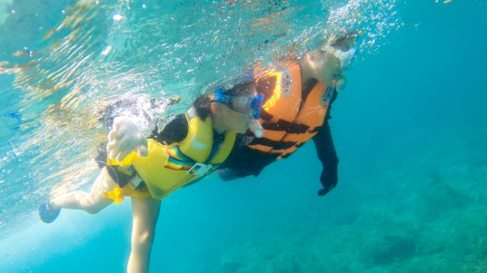 ライフジャケットを着用して、浅瀬で安全に海中観察を体験します。色とりどりの魚や海藻を間近に見られ、自然と一体になる感覚に夢中に。