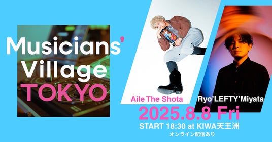 次世代を担う若手アーティストの育成や、国内外で活動するアーティスト・クリエイターの共創活動を応援する「Musicians' Village TOKYO vol.3」の開催が2025年8月8日(金)、天王洲アイル「KIWA」及びオンライン配信にて決定したことをお知らせします。今回は、BSMG所属の注目のシンガーソングライター Aile The Shota を迎えて、音楽プロデューサー Ryo'LEFTY' Miyata との公開コライトを実施します。