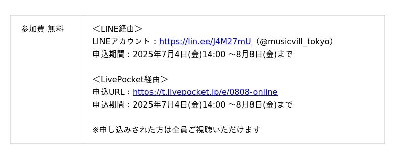 ◾︎オンライン参加(人数制限なし)※LINE & LivePocketより申込