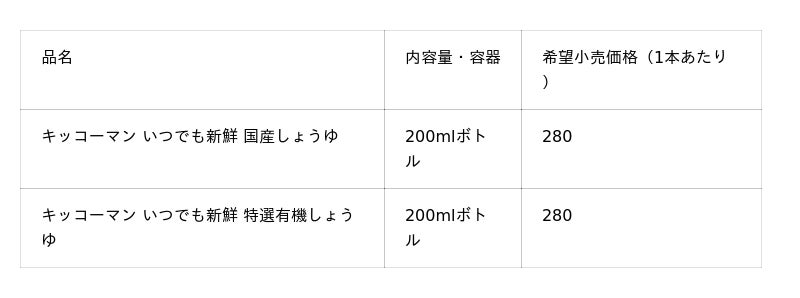 キッコーマン食品株式会社は、8月4日に、「キッコーマン いつでも新鮮 国産しょうゆ」200ml、「キッコーマン いつでも新鮮 特選有機しょうゆ」200mlを全国で新発売します。