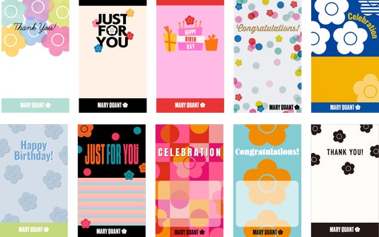 さらに、マリークワントらしさあふれるオリジナルデザインのデジタルメッセージカード10種も登場。誕生日やお礼、お祝い、応援メッセージなど、気持ちを込めたメッセージをシーンに合わせて添えることができます。