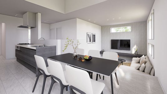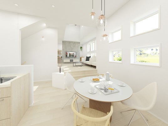 も連続配置。リビングの天井は一部が勾配天井となっており、開放感のある空間に仕上がっています