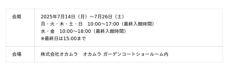 2025年7月14日(月)~7月26日(土)にオカムラ ガーデンコートショールームで開催