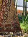 アジアの民族衣装、日本三大原始布の着物や帯、キリムの絨毯など、約140点を展示。