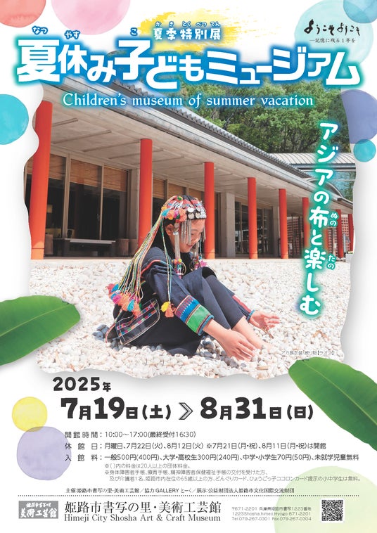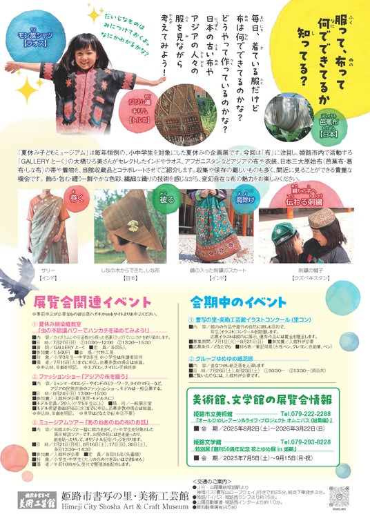 姫路市書写の里・美術工芸館では、令和7年7月19日(土曜日)から8月31日(日曜日)まで夏季特別展「夏休み子どもミュージアム-アジアの布と楽しむ」を開催します。