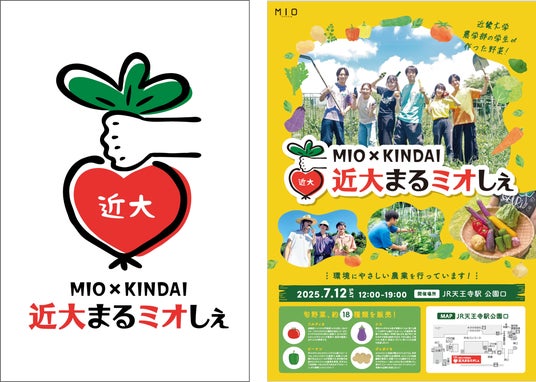 「近大まるミオしぇ」を実施するにあたり、近畿大学農学部の学生と共に企画デザインを行っております。以下のロゴ、ポスター、商品説明等についても、学生がデザイン案を考え展開をしています。【ロゴ】 【ポスター】