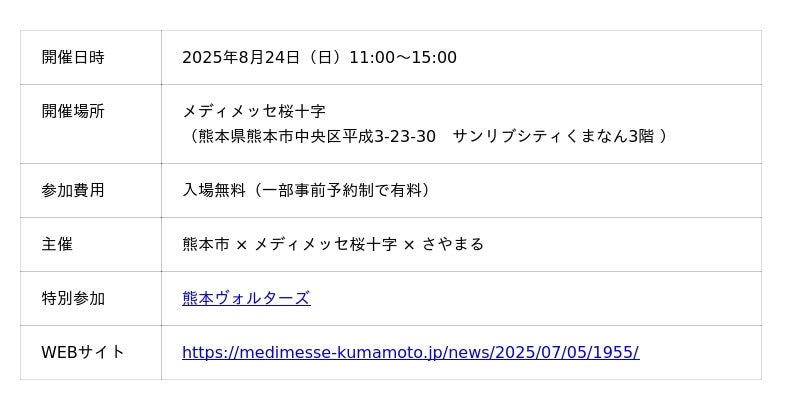 入場無料の夏休み体験型イベント『くまもとこども未来フェス』 メディメッセ桜十字×熊本市×イベントプランナーさやまる氏共同主催で8月24日(日)に開催!