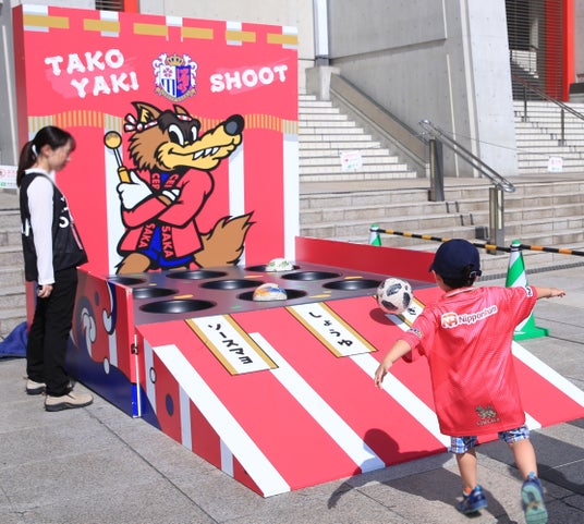 『世界のMUSASHI個展』には作品展示のほか、大阪の名物たこ焼きにちなんだアトラクション「TAKOYAKI SHOOT」を設置。子どもたちに楽しんでもらい、サッカーに親しんでいただく予定。