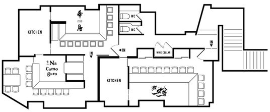 席数 :全40席(若尊12席、希鳥12席、Na Camo guro 16席)