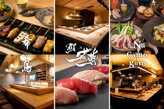 山形県産の最上鴨を扱う鴨料理専門店<赤坂Na Camo guro>、鹿児島県産の地鶏・黒さつま鶏を店内で一本一本店内で串打ちして焼き上げる焼鳥<赤坂 希鳥>、全国の漁師から届く鮮魚とこだわりの酒を取り揃える江戸前寿司の<鮨 若尊>、すべてが職人たちによる食の体験を愉しむプレミアム横丁です。