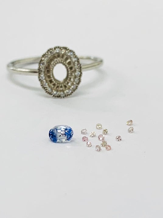 センターストーンと取り巻き石を選びながら、「自分だけの小さな宇宙」をお仕立ていただけます。