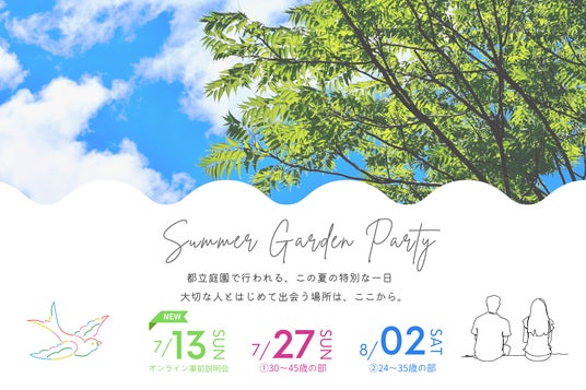 一般社団法人日本婚活支援協会(所在地:東京都港区、代表理事:後藤 幸喜)は、結婚を真剣に考える独身者を対象とした婚活イベント『2025 SUMMER GARDEN PARTY』を、2025年7月27日(日)および8月2日(土)の2日間、東京都江東区の都立庭園「清澄庭園」にて開催いたします。また、初めて参加される方にも安心してご参加いただけるよう、オンラインによる事前説明会(参加費無料)を7月13日(日)に初開催いたします。