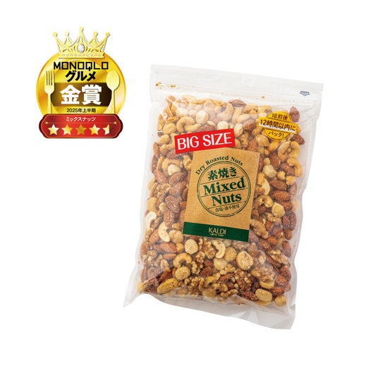 カルディで買えるオリジナルミックスナッツが金賞に輝きました! ナッツの組み合わせがよく、マカダミアナッツの甘みとくるみのほろ苦さがベストマッチ。ローストの具合も素晴らしく、そのままでも、サラダのトッピングにも最適です。