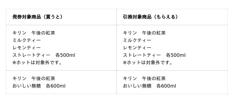 キャンペーン第1弾は、対象の「午後の紅茶」を買うと、翌週もう1本もらえる無料引換券が発券されます。