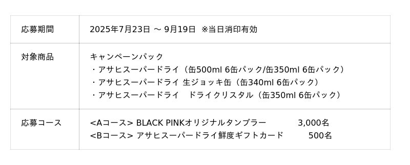 ■「スーパードライBLACKPINKオリジナルキンキンタンブラー当たる!キャンペーン」