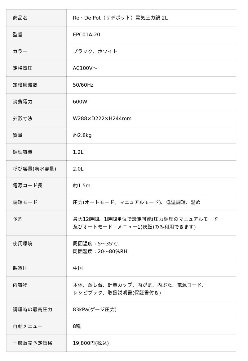 「Re・De Pot」は、2020年の発売以来、シリーズ累計11万台を突破した(※1)人気の電気圧力鍋です。今回の新モデルは、「手間は最小、歓びは最大。」のコンセプトを受け継ぎながら、炊飯機能と調理性能を大幅にアップデート。最大1.8気圧の高圧調理による25分のスピード炊飯はそのままに、内釜をセラミックコートに刷新し、より香り高く、甘みのあるごはんを実現しました。