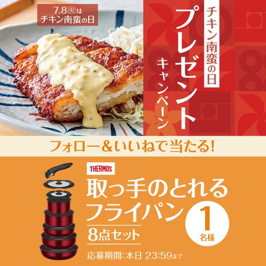 このたび日本国内の「やよい軒」では、やよい軒公式X・公式Instagramにおいて、7月8日の『チキン南蛮の日』を盛り上げるため、「サーモス 取っ手のとれるフライパン8点セット」が当たる!『チキン南蛮の日』キャンペーンを実施いたします。