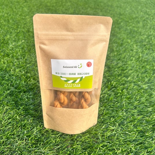 「よりより」 は中国より伝えられたとされる長崎を代表する銘菓で、ねじれた形状の見た目から 「よりより」 と長崎県の皆さまに愛されています。そんな 「よりより」 を今回特別に、長崎県大村市の株式会社フルカワ (林製菓) 様にソラシドエアのロゴ入りパッケージで製造いただきました。素朴ながらも奥深い味わいを通じて、長崎ならではの食文化もお楽しみいただければ幸いです。