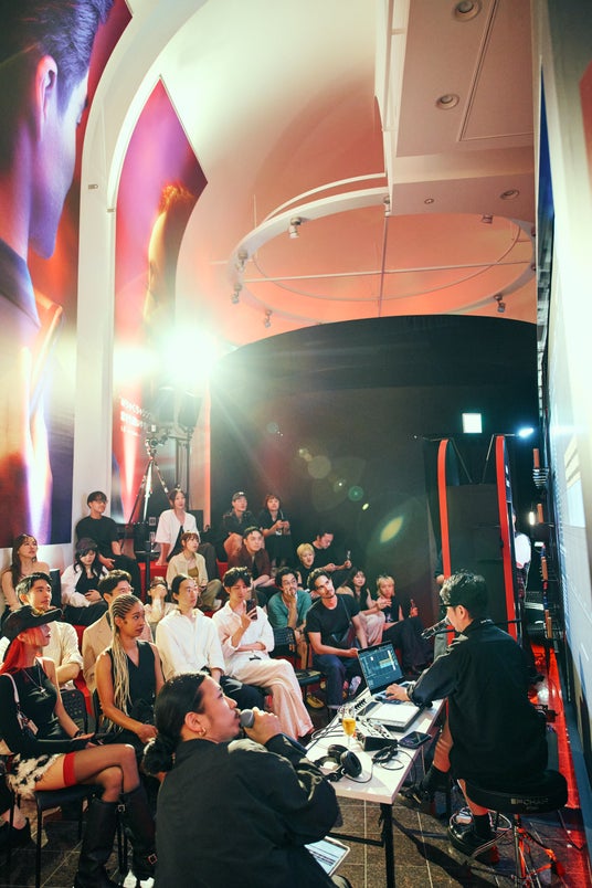 glo(TM) Hiloが持つ「洗練」「自己表現」「感性への刺激」といったキーワードを、"音"というフィールドで体感するセッション。☆Taku Takahashiが20分で楽曲を即興制作し、AIやサンプラーを駆使して音を重ねていく過程を間近で体験。音が生まれるリアルなプロセスに、来場者の好奇心が引き込まれていきました。