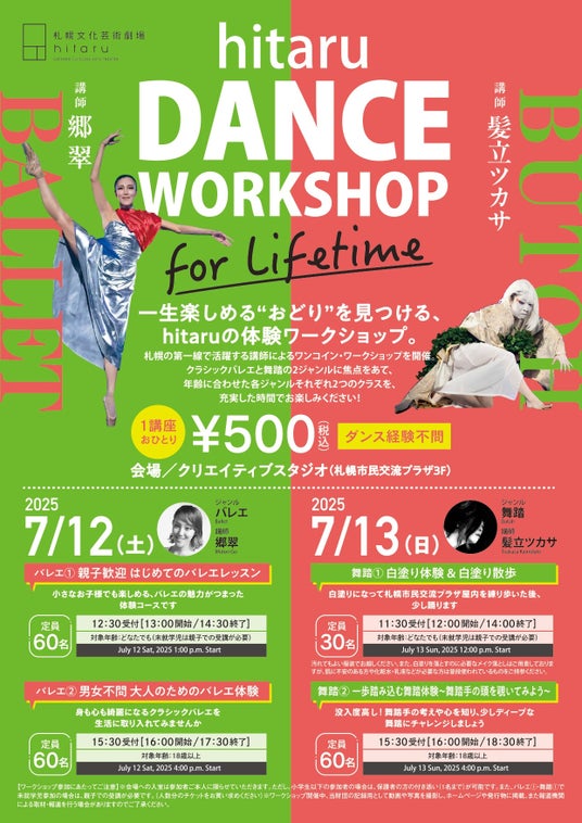 札幌の第一線で活躍する講師によるワンコイン・ワークショップを開催。