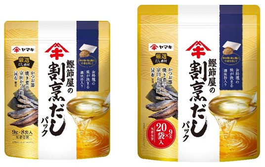 ヤマキ株式会社(本社:愛媛県伊予市 代表取締役社長:城戸善浩 以下ヤマキ)は、今年で発売10周年を迎える「鰹節屋の割烹だしパック」をリニューアル発売します。「鰹節屋の割烹だしパック」は、厳選した4種のだし素材(かつお節・いわし煮干・宗田かつお節・昆布)を絶妙なバランスでブレンドした、鰹節屋ならではのだしパックです。今回のリニューアルでは、だし素材を約1.7倍増量し、だしの香り、コクをアップさせたほか、いろいろなお料理にも使えることをお伝えするためにパッケージもリニューアルしました。