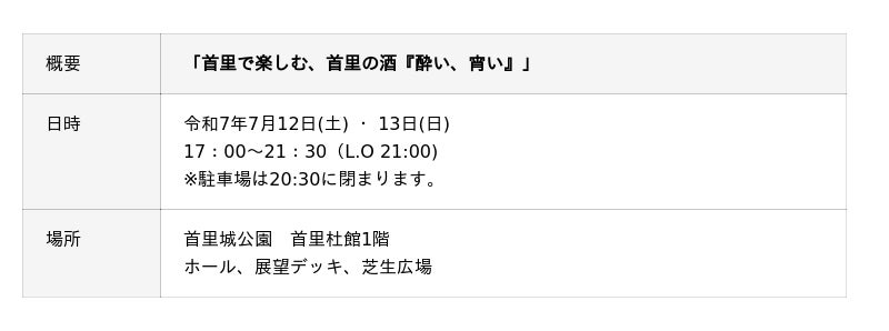 【首里城公園】"首里で楽しむ、首里の酒『酔い、宵い』"イベント開催!