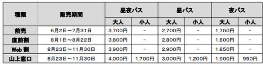 【料金】上記、夜パスまたは昼夜パスのとおり