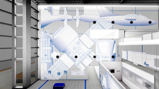 エントランスでは、高さ10m以上の大空間を利用し、三菱重工グループが手がけるロケットやガスタービン、全自動無人運転車両システム(APM)などの実物大グラフィックを壁一面に展示した「1/1 SCALE PROJECT」を通じて、来館者は多彩な製品群のスケールを実感し、三菱重工グループの幅広い事業領域や社会を支える技術への理解を深めることができます。