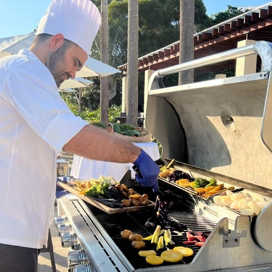 収穫した野菜はご自身でグリルしてお召しあがりいただけます。その他農園野菜をふんだんに使用したピザ、カナッペ、ピンチョスをブッフェスタイルでご提供いたします。