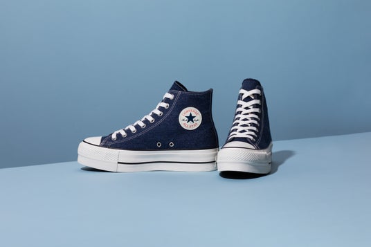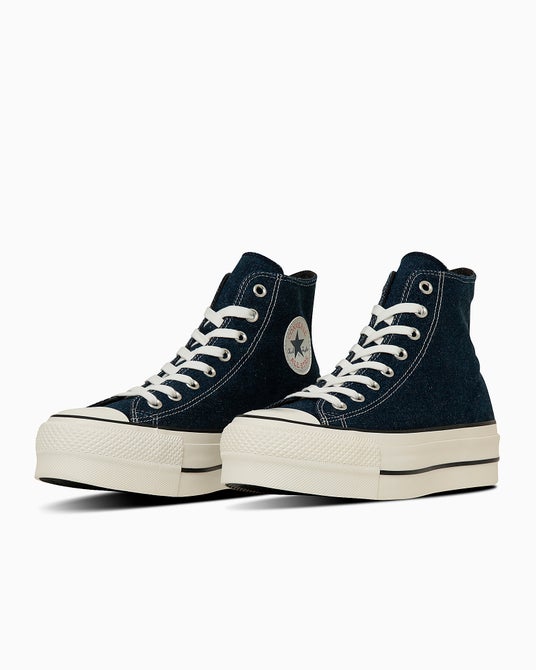 厚底ソールを採用したオールスター リフテッドに、インディゴデニムの素材アレンジを施した直営店限定モデル。アッパーに深みのあるインディゴデニムを採用し、ナチュラルながらも存在感あるデザインに仕上げた。ソール内部に内蔵されたウレタンフォームが、クッション性と軽量性を向上。インソールには高密度ウレタンフォームとラバースポンジを組み合わせた仕様を採用し、履き心地にもこだわった一足。