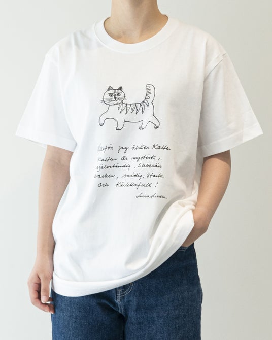 本シリーズでは、1959年の日記に描かれた猫「ピンタ」を主役に、リサ・ラーソンの代表的なスケッチをプリントしたTシャツ5柄を展開。陶芸作品とは異なる角度から、リサのユーモアや詩的感性を感じられるデザイン。価格は3,960円(税込)から。