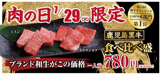 土用の丑と並ぶ、肉好きにとっての記念日「29(にく)の日」には、【鹿児島黒牛 食べ比べ盛り】を特別価格でご用意!